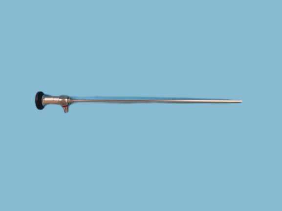 4 मिमी व्यास और 0° देखने की दिशा वाला एक कठोर एंडोस्कोप/कठोर सिस्टोस्कोप टेलीस्कोप - जिसका अर्थ है कि यह दृष्टि की सीधी-आगे की रेखा देता है।